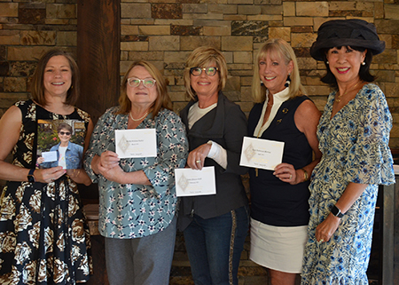Pictured are Susan holding a photo of Leslie Dardano Hasson who was unable to attend, Kathy Graham Gadler, Nancy Piazza Cobb, Andi Anderson Mariani and VP of Communications Maja Tanaka Berge.