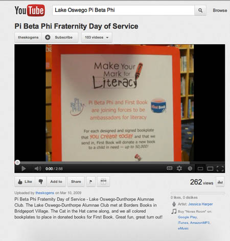 Click on the Make Your Mark for Literacy sign below to watch a very cute video that Heather Butler Skogen created with "then Club President" Missy Gerber dressed as The Cat. This was our 2009 Fraternity Day of Service event. By the way, Heather's Pi-Phi-in-training daughter is named Norah.
